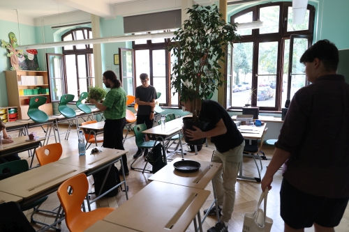 Viele Hände = schnelles Ende. Bücher aus dem Keller ins Klassenzimmer.