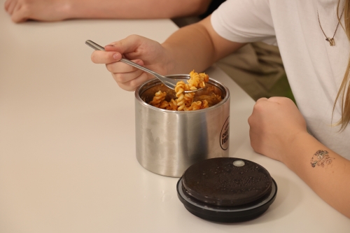 So geht es auch: Thermosgefäß mitgebracht, wenn man mal nichts zum Bestellen gefunden hat.