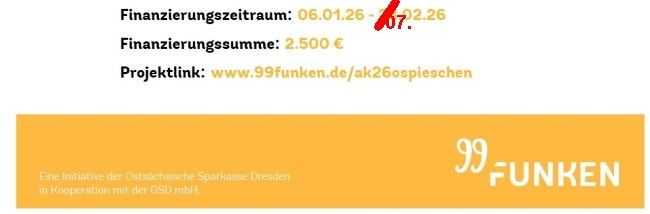 Ziel ist es, im Zeitraum 08.01.2026 – 07.02.2026 so viele Unterstützungen wie möglich zu erhalten, da in diesem Zeitraum ein Contest veranstaltet wird, bei dem zusätzliche Preise winken. Das ist ganz unabhängig von der Höhe der einzelnen Spende - jede Spende ab 5,00 € zählt dafür.