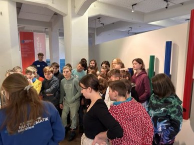 10.01.2023 - Am Freitag, dem 02.12.2022 statteten unsere sechsten Klassen der Technischen Sammlung in Dresden einen Besuch ab. Dass es hier besonders erwünscht ist, die Ausstellung zu begreifen, Dinge auszuprobieren und eben (fast alle) Exponate anzufassen, kam bei den Schülerinnen und Schülern der sechsten Klassen sehr gut an. Im Matheland gab es so viel auszuprobieren, dass die 90 Minuten wie im Flug vergingen und das ein oder andere Aha-Erlebnis garantiert waren. Zusammenhänge wurden neu verstanden und auch der Spaß kam nicht zu kurz – insbesondere im Inneren einer Seifenblase zu stehen sorgte für allerhand Belustigung. Codes knacken, rechnen, malen, Brücken bauen, Töne erzeugen, Wasser lenken… schon verrückt, wie viel Mathematik in unserem Leben steckt.