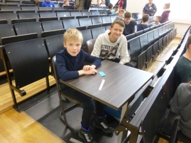Um 8:45 Uhr wurden alle Teilnehmer von den Organisatoren (Fachberater und Professoren der Hochschule) begrüßt und durften sich knapp zwei Stunden an verschiedenen mathematischen Knobeleien probieren. Im Hintergrund korrigierten die Lehrer die Aufgaben, sobald die Schüler mit denen fertig waren.